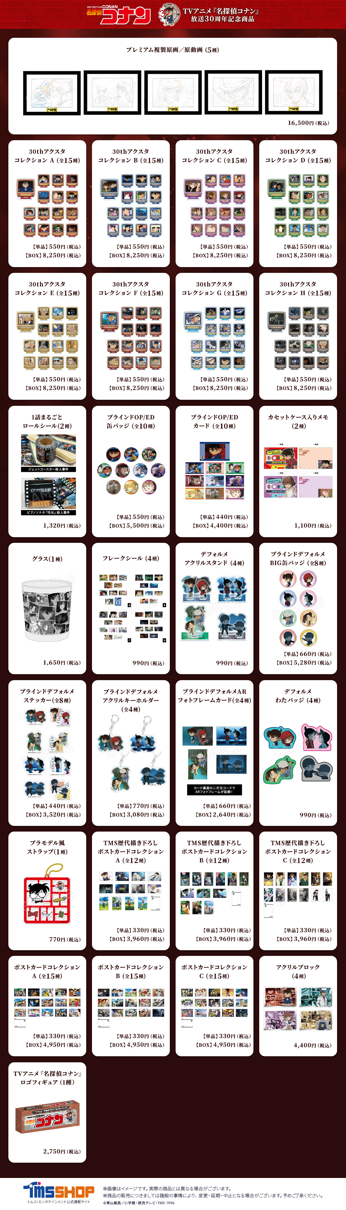 『名探偵コナン』のアニメ30周年を記念した新商品が、 通販サイト「トムスショップ」にて2月6日(金)より発売! 新規描き下ろしや歴代場面写真、原画を使った商品など盛り沢山!
