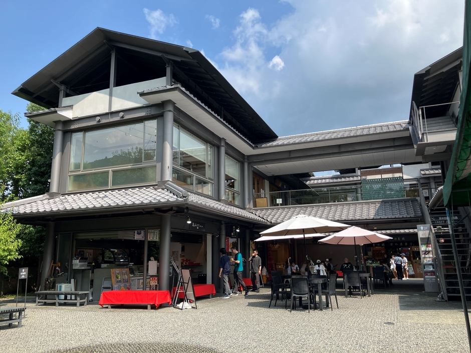 「昇龍苑」は、観光都市・京都を代表する景勝地である嵐山エリアに位置し、京福電鉄(嵐電)嵐山駅から徒歩1分という利便性の高い立地にある、和モダンを基調とした地上2階建の商業施設です。開業以来12年にわたり、国内外の観光客に利用され、嵐山観光の拠点として親しまれてきました。