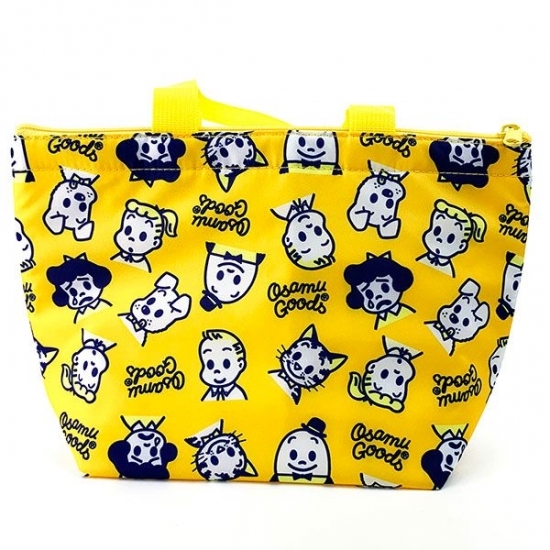 オサムグッズのキャラクターが勢ぞろい!元気なイエローの総柄がポップなランチバッグもおすすめです。