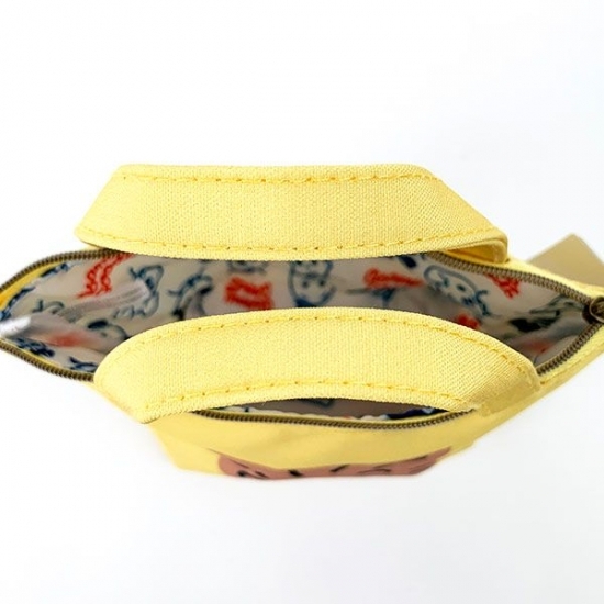 イエロー地のポーチによく映えるキャットはほっこり愛嬌のあるお顔が◎!