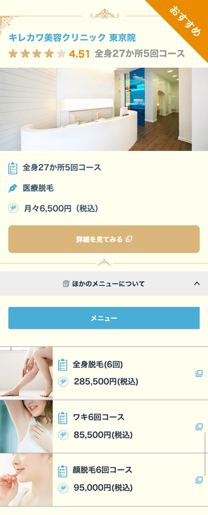 美容クリニックの評価や美容施術の料金で一括比較できるので、自分に適した美容クリニックの情報に迅速にたどり着けます。