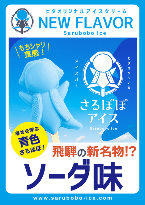 飛騨高山の大人気スイーツ「さるぼぼアイス」に 2025年!ついに!新しい幸せを呼ぶ 青い「ソーダ味」が登場! 8月1日から発売開始!!!