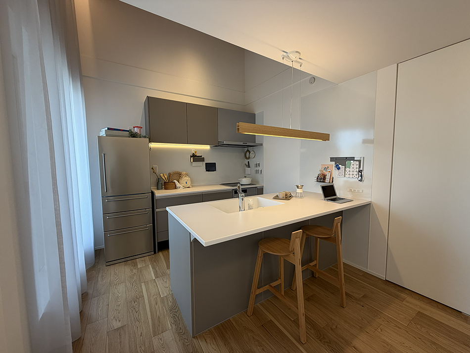 1階は、あえてキッチンを「中に閉じ込める」独立型スタイルを採用。北欧のカフェのような落ち着きを演出した「スマイルパッケージ」を展開。一方で、家全体の性能は泉北ホーム最高峰の「+℃ermo7G」という、まさにデザインと性能が融合した「理想の住まい」です。