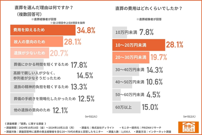 株式会社ディライト(所在地:東京都新宿区、代表取締役:高橋 亮)は、直葬の喪主経験者を含む20〜70代の男女を対象に「直葬」に関する調査を行いました。