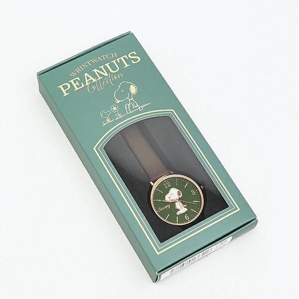 続いてご紹介するスヌーピーの腕時計は、スヌーピーとウッドストックの絵が描かれた、落ち着いた色味がシックなこちらです。