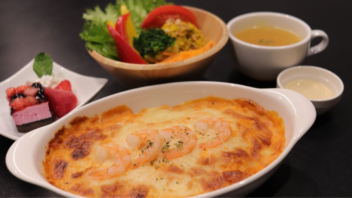 濃厚な海老ドリアと一日分の緑黄色野菜が摂れるからだにやさしいメニューです。
