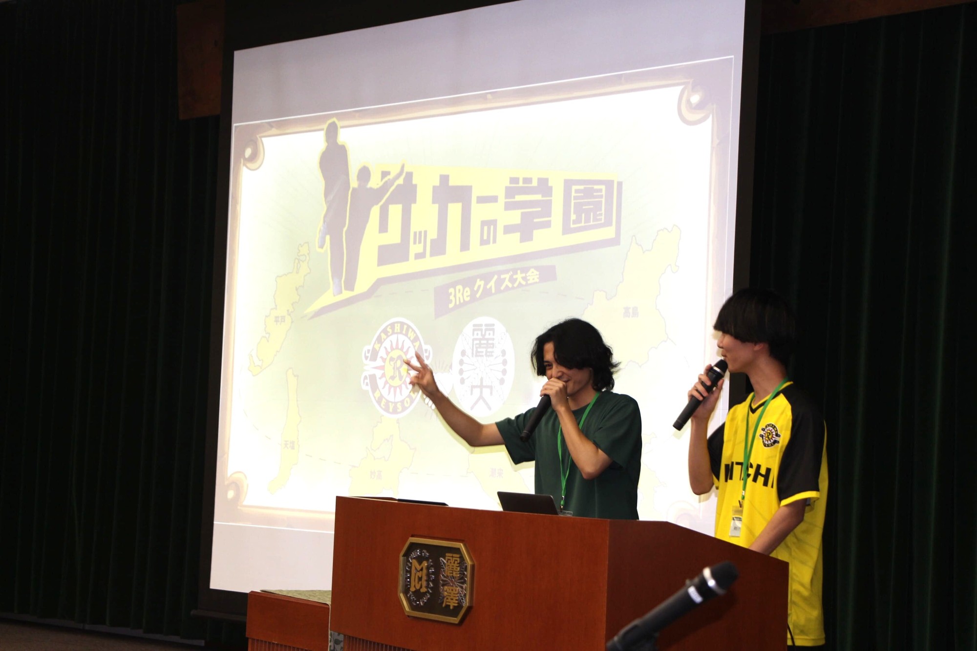 会場の雰囲気を一層盛り上げたのが、「3Reクイズ大会:サッカーの学園」です。柏レイソルの協力のもと、工学部2年次生の阿部 至恩さん、大塲 史温さんがAIを活用したクイズ大会を企画・運営し、高校生・大学生・市長・関係者がランダムにチームを組んで挑戦しました。優勝チームには柏レイソルと潮来市から賞品が贈られ、その他のチームにも各自治体から特産品などの参加賞が授与され、世代や地域を超えた交流の場となりました。最後に、株式会社日立柏レイソル 山崎和伸 代表取締役より、「柏の皆さまには1986年の活動開始当初から応援をいただいている。地域の課題解決の一助になれるよう、これからも地域とともに歩んでいきたい」と講評をいただき、会場から大きな拍手が送られました。