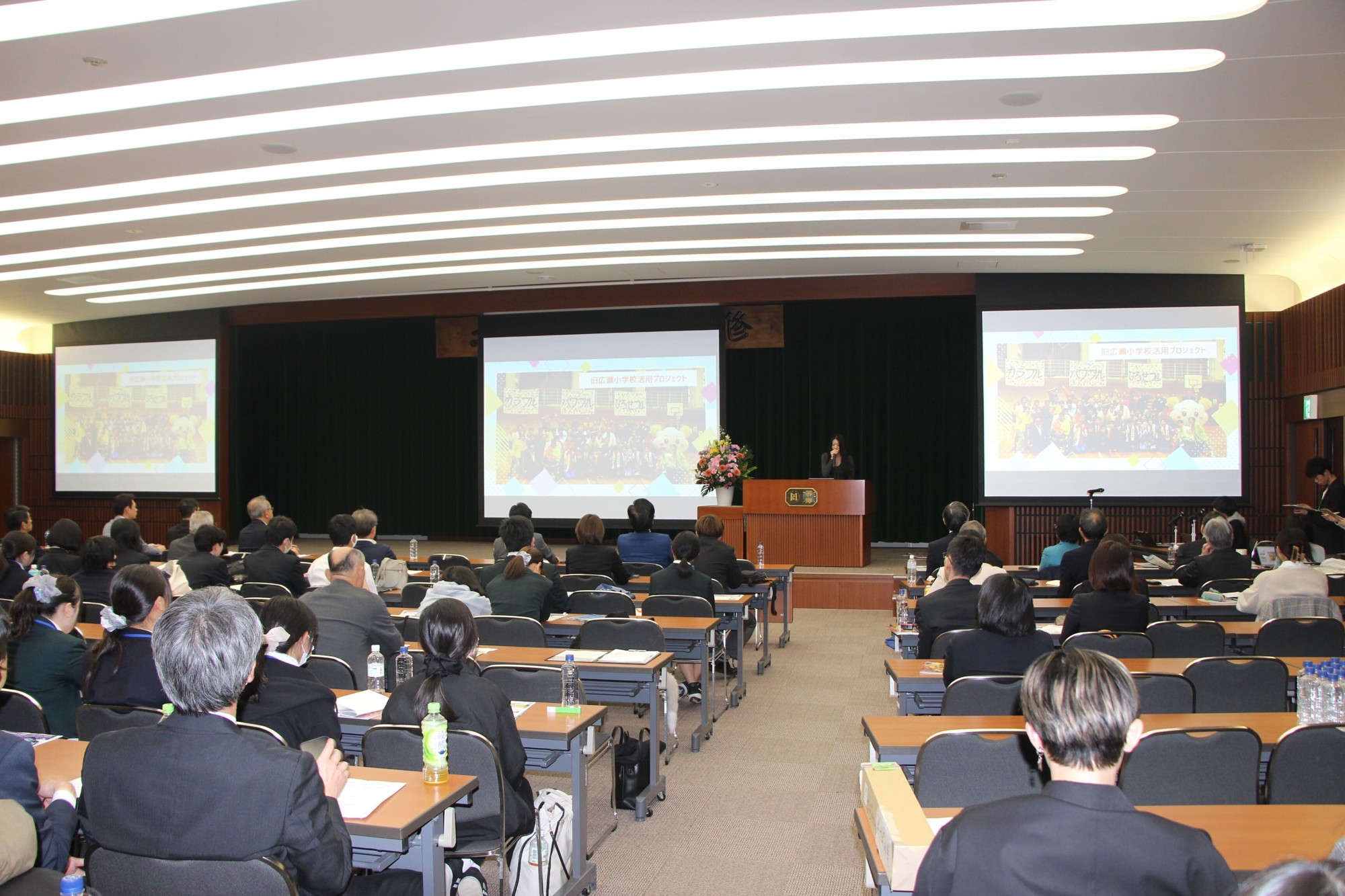 最後に、黒須里美副学長が御礼と統括の言葉を述べて閉会しました。「本日の素晴らしい発表にたどり着くまでに、多くの準備と支えがあったと思います。このドラマを支えてくださった自治体や先生方に深く感謝します。この機会を第一ステップとして、これからも麗澤大学と各自治体、そして高校生の皆さんと共に日本を明るくしていきましょう」と力強く締めくくられました。サプライズとして、4期16年にわたり市政を担い、今期で退任される黒田市長に花束が贈られ、参加者全員から温かい拍手が送られました。