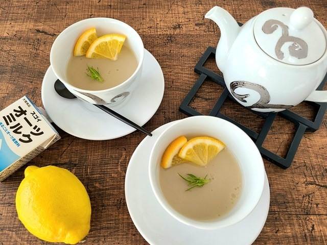 現在、製品サイト( https://sugoidaizu.jp/ )で料理研究家・福本陽子氏によるアレンジメニューを公開中だ。素材の甘さが特長の『スゴイオーツミルク』を使った甘く爽やかなレモン風味の杏仁豆腐「オーツミルクレモン杏仁」と、『スゴイひよこミルク』のマイルドな味わいとカレースパイスが食欲を促してくれる「ひよこミルクのスパイシーシチュー」の2品が楽しめる。