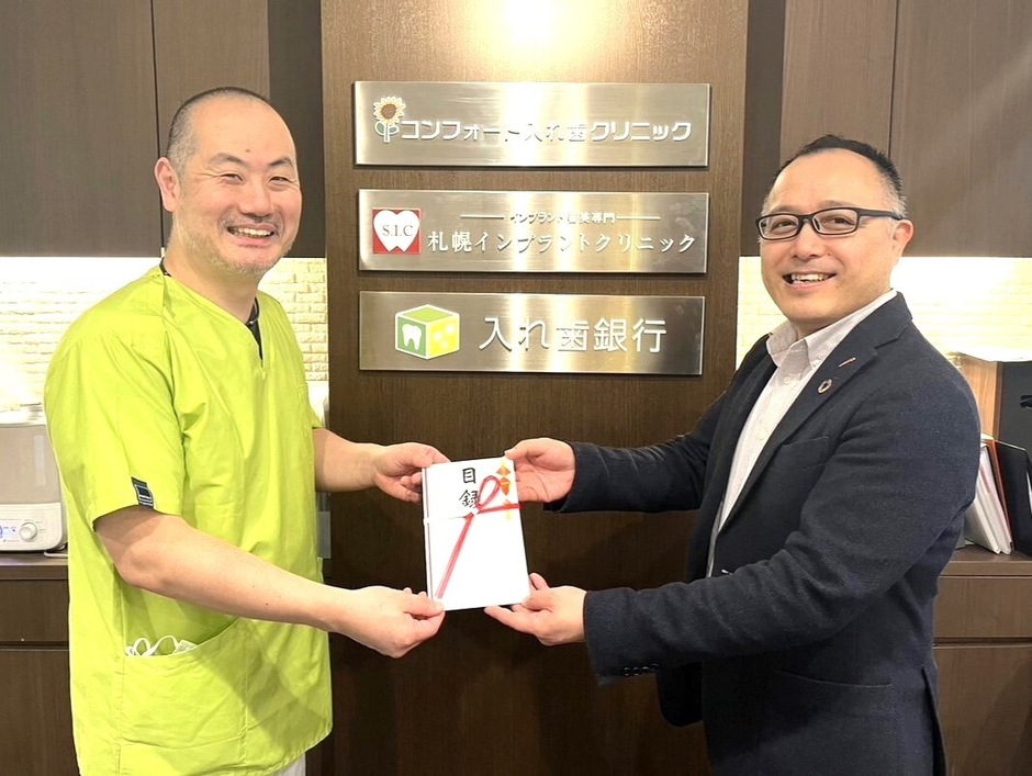 入れ歯治療に特化したコンフォート入れ歯クリニック(本社:北海道札幌市、理事長・院長:池田 昭)は、災害支援活動に役立ててもらうため、2024年10月の入れ歯供養祭で供養した入れ歯や差し歯などを換金し、地元北海道で活動している災害支援団体へ寄付をいたしました。2025年1月23日(木)に支援金目録の贈呈式を執り行います。