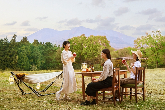 日本初のアグリツーリズモリゾートとして、農業の営みを感じる寛ぎの時間を提案したいと考えました。夏の日中は、暑すぎることから、日が沈み、暑さ和らぐ夕方から宵(よい)にかけて「ビアガーデン」を実施します。当ビアガーデンで提供するのは、夏に収穫の最盛期を迎える農作物を使用した爽やかなドリンクです。また、那須岳を望む田んぼの畔の特別席や、イルミネーション輝くグリーンハウスなど、リゾート施設で寛ぎながら自然に囲まれ空間の中で、夏の夕涼みをドリンクともに楽しむことができます。