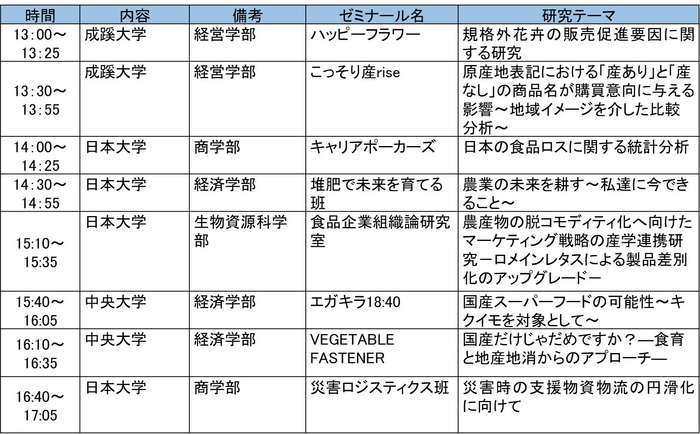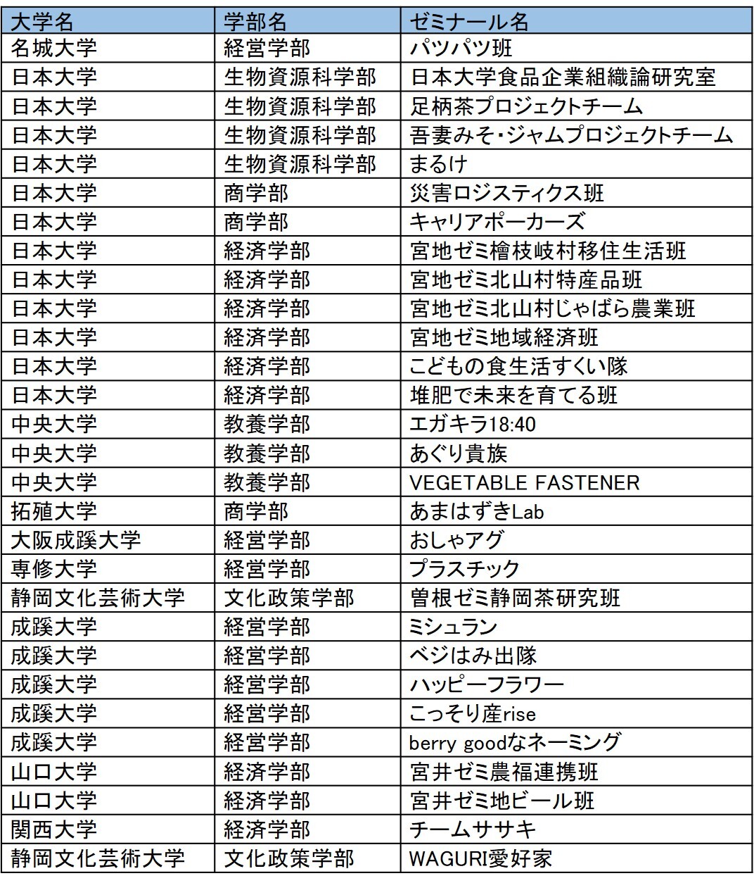 今大会は14大学から、学術的研究分野29チーム、実践的研究分野16チームの計45チームが参加しています。予選は、11月7日までの間に、各チームが提出したプレゼン動画を審査する形式で行われ、決勝へは学術的研究分野の予選上位8チーム、実践的研究分野の同5チームが出場します。決勝の結果は、翌日にアグコン公式サイトにて発表いたします。