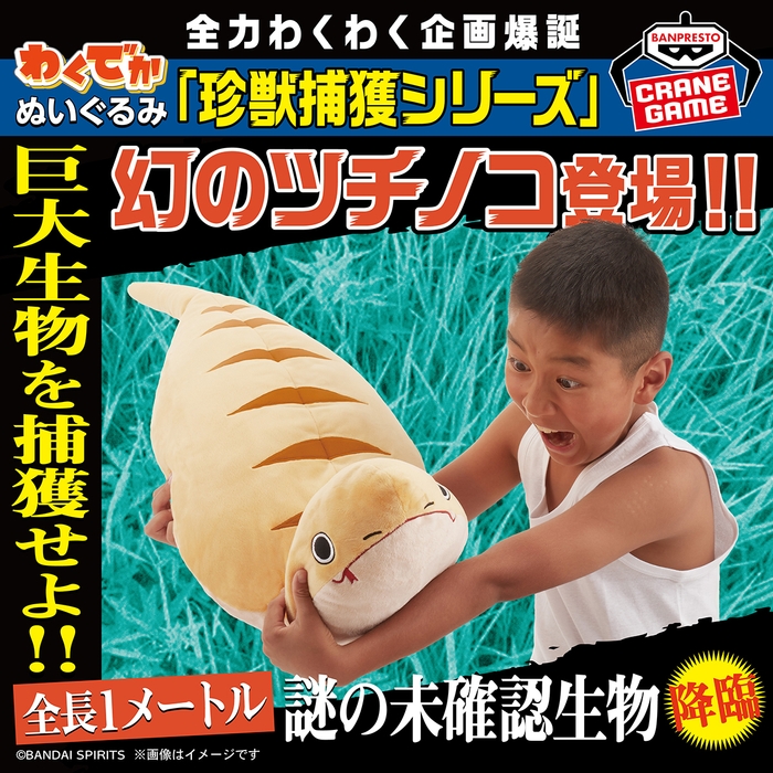 珍獣「幻のツチノコ」が 約100cmの大きなぬいぐるみになって 全国のアミューズメント施設に出現!