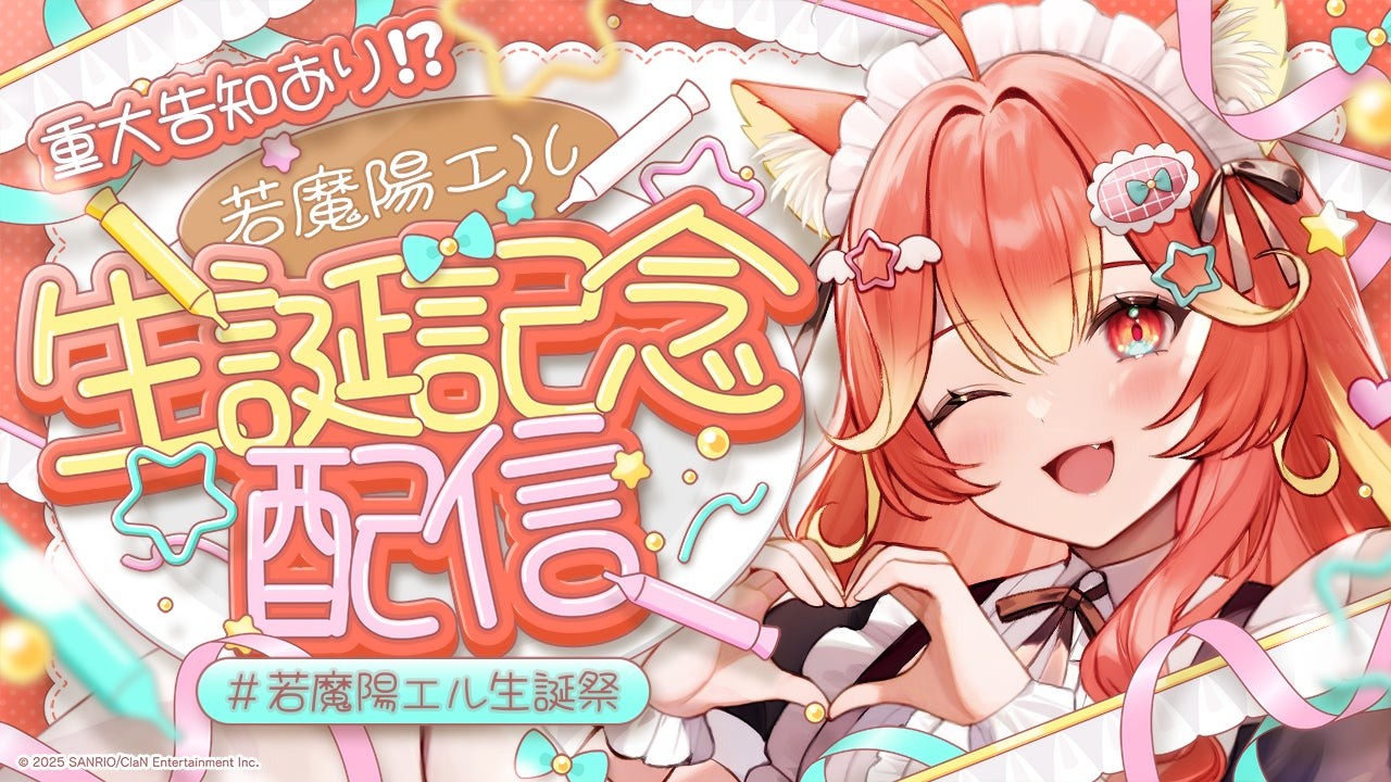 株式会社ClaN Entertainment(本社:東京都港区 代表取締役社⻑:⼤井 基⾏、以下ClaN)は、株式会社サンリオ(本社:東京都品川区)と共同で行うVTuberプロジェクト「にゃんたじあ!」に所属する「若魔陽エル」 が11月5日に誕生日を迎えたことを記念し、誕生日グッズの販売を行います。