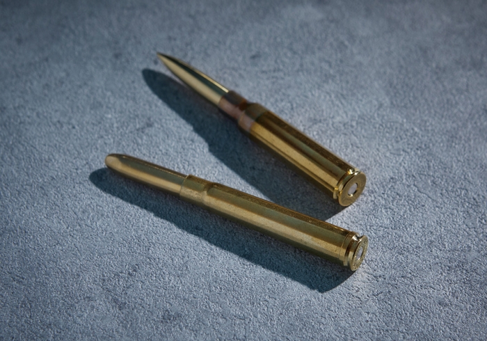 1位と同シリーズのブレットタイプのボールペン。0.375 インチ(9.5mm)の本物の薬きょうを使用。キャップを閉めるとポケットやポーチ、道具箱などにすっぽり収まるサイズ。使用時はフルサイズでバランスよい筆記具に。