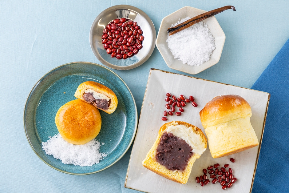 ふんわりとしたパン生地に、バニラ入りのバタークリーム、又一庵の粒あんを入れ、仕上げに海塩をまとわせました。冷やすことで、かじるような食感になるバターと、塩バニラの塩味が絶妙なバランスです。ひんやりとした夏季限定の『冷やし熱海ばたーあんパン【塩バニラ】』は、暑い夏でも爽やかに最後のひと口までお楽しみいただけます。