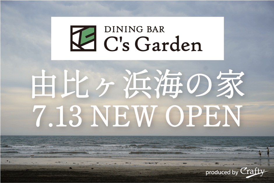 東京都港区麻布十番でダイニングバー「C's Garden/シーズガーデン」の運営を行う株式会社クラフティ(所在地:東京都新宿区、代表取締役:風間 哲也)は、鎌倉由比ヶ浜海岸に海の家『C's Garden』を7月13日(土)にオープンします。