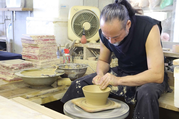 北窯・與那原工房で修業を積んだのち2010年に設立した「180+」。鮮やかさのなかに土の風合いを感じる色付けや、伝統的な陶芸の技法である「しのぎ」を取り入れた作風など、モダンながらもぬくもりのある作品を制作。