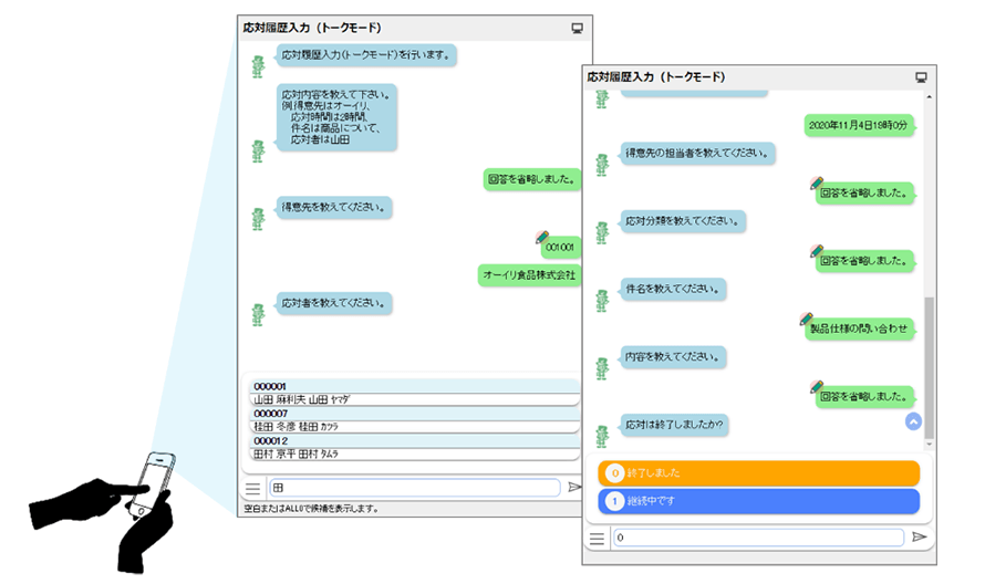 SMILE V CAB トークモード画面イメージ(応対履歴入力画面)