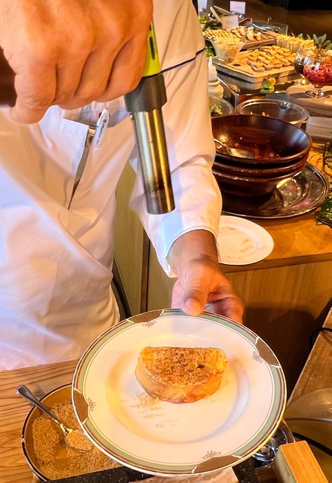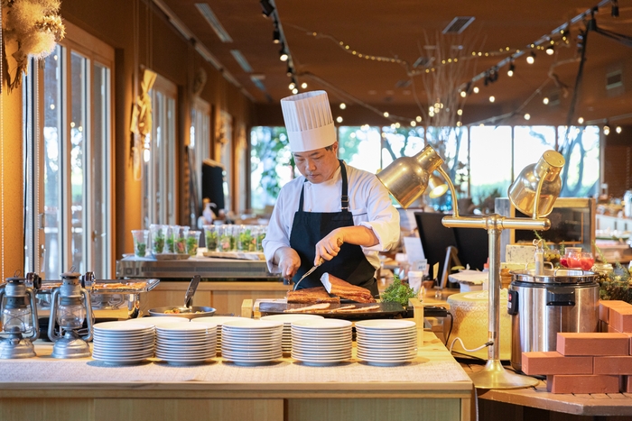 この特別な朝食をさらに魅力的にするのが、シェフが目の前で調理を行うライブキッチンの存在です。ライブキッチンでは、シェフが目の前で調理を行い、臨場感あふれるひとときを演出します。