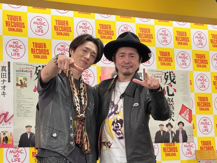 また、前日の4月26日には、タワーレコード新宿店でロックバンド・怒髪天のボーカル増子直純との異色のトークイベントにも出演。増子が真田の“ノックアウトボイス”に惚れ込んで誕生した楽曲「一匹狼のブルーズ」(作詞:増子直純、作曲:上原子友康)の制作秘話をはじめ、互いの音楽への想いをたっぷりと語り合い、ふたりで「雪国」、「一匹狼のブルーズ」を披露するなど、ジャンルを超えた交流で大きな話題を呼んだ。