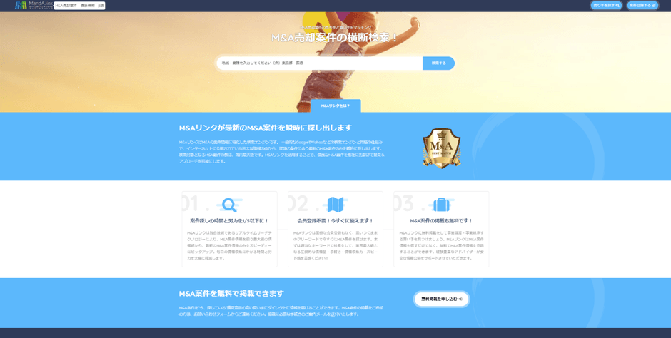 M&A売却案件の横断検索サイト「M&Aリンク」サービス開始! 日本中のM&A売却案件が一覧可能、売り手と買い手のマッチング