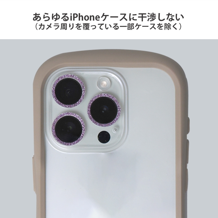 レンズ周りがラメになっているため、iPhoneにつけることでオシャレにデコレーションが可能。