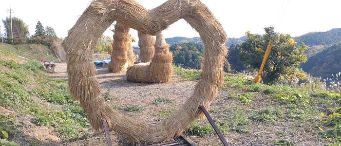 「上籾棚田テラス 籾庵」では、穂木(ほぎ)をした藁、約1反分(米約400kg分)を使用した藁アート『8つの籾の輪くぐり』を昨年11月にリニューアルいたしました。そして今回、夏期限定のキャンペーンとして、8つすべての籾の輪を巡った様子を写真でご提示いただくと、3,000円相当のペア食事券やオリジナルの御朱印帳、手作り味噌や塩麹など豪華プレゼントが当たる、ハズレなしの抽選会を開催いたします。夏の思い出作りに、緑豊かな上籾棚田の風景を見ながら、自然栽培の野菜をたっぷり使用した食事をお楽しみください。