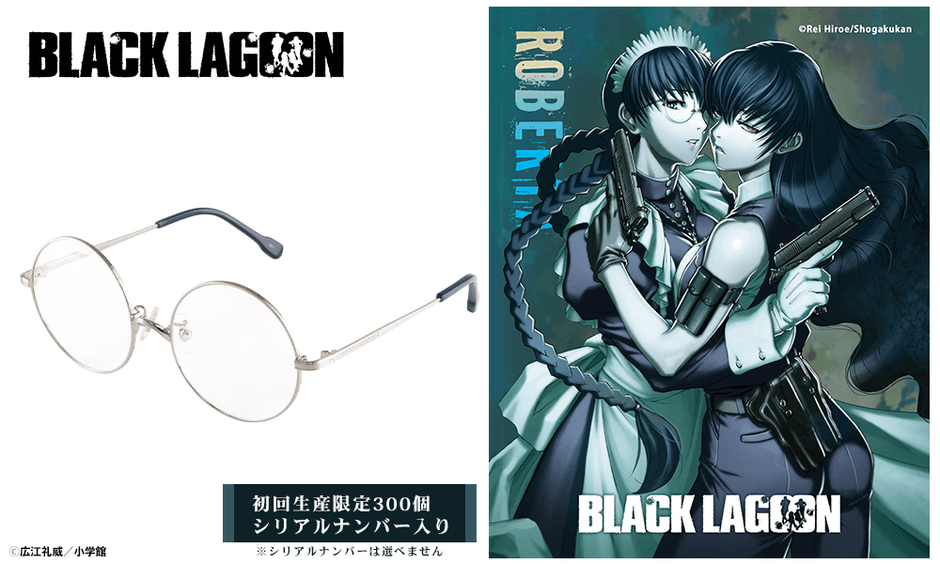 執事眼鏡eyemirror(株式会社DUO RING)は、2026年に25周年を迎える本格ガンアクション漫画『BLACK LAGOON(ブラックラグーン)』より、「ロベルタ」をイメージした眼鏡を2025年1月10日(土)より販売開始します。