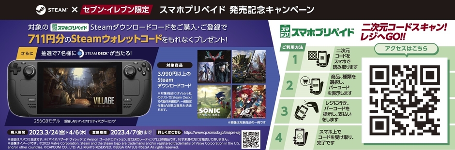 「スマホプリペイド」サービス開始 Steamウォレットコード・「Steam Deck」 プレゼントキャンペーン開催!
