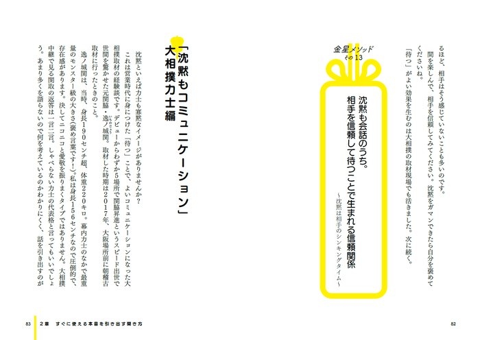 そんな失敗やそこから得た学び、そして試行錯誤するなかで掴んだ成功体験から紹介する本書のメソッドは、どれも生き生きとした内容になっています。
