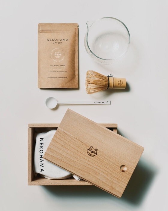 2017年に誕生した「NEKOHAMA」は、自身のルーツを日本にもつMax Andoと妻で元ヴィクトリアズ・シークレットモデルのSanne Vloetと、彼の親友のJason Gorskie の3人がファウンダーとなり立ち上げたLA発の抹茶ブランド。
