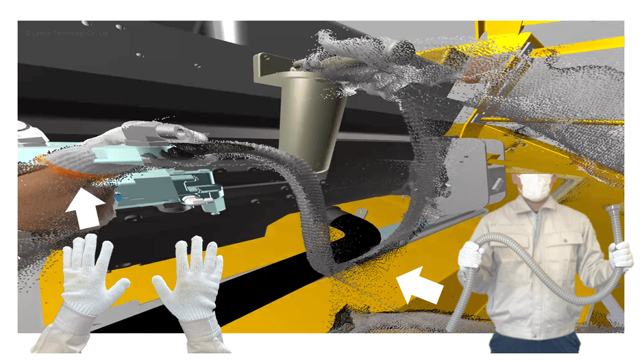 XVL VR Plusは大容量3D製品データを変換したXVLデータを加工なしで、そのまま使い、没入感ある組立検証をVR (Virtual Reality:仮想現実)空間で体験できます。2019年の提供開始から多くの企業に導入されデジタル検証に活用されています。新バージョンでは、Azure Kinect DKを利用し、VR空間に自分の手足や作業者、設備や部品といった周りの環境の“今”の状況を点群モデルとしてリアルタイムに取り込む疑似MR機能を提供します。