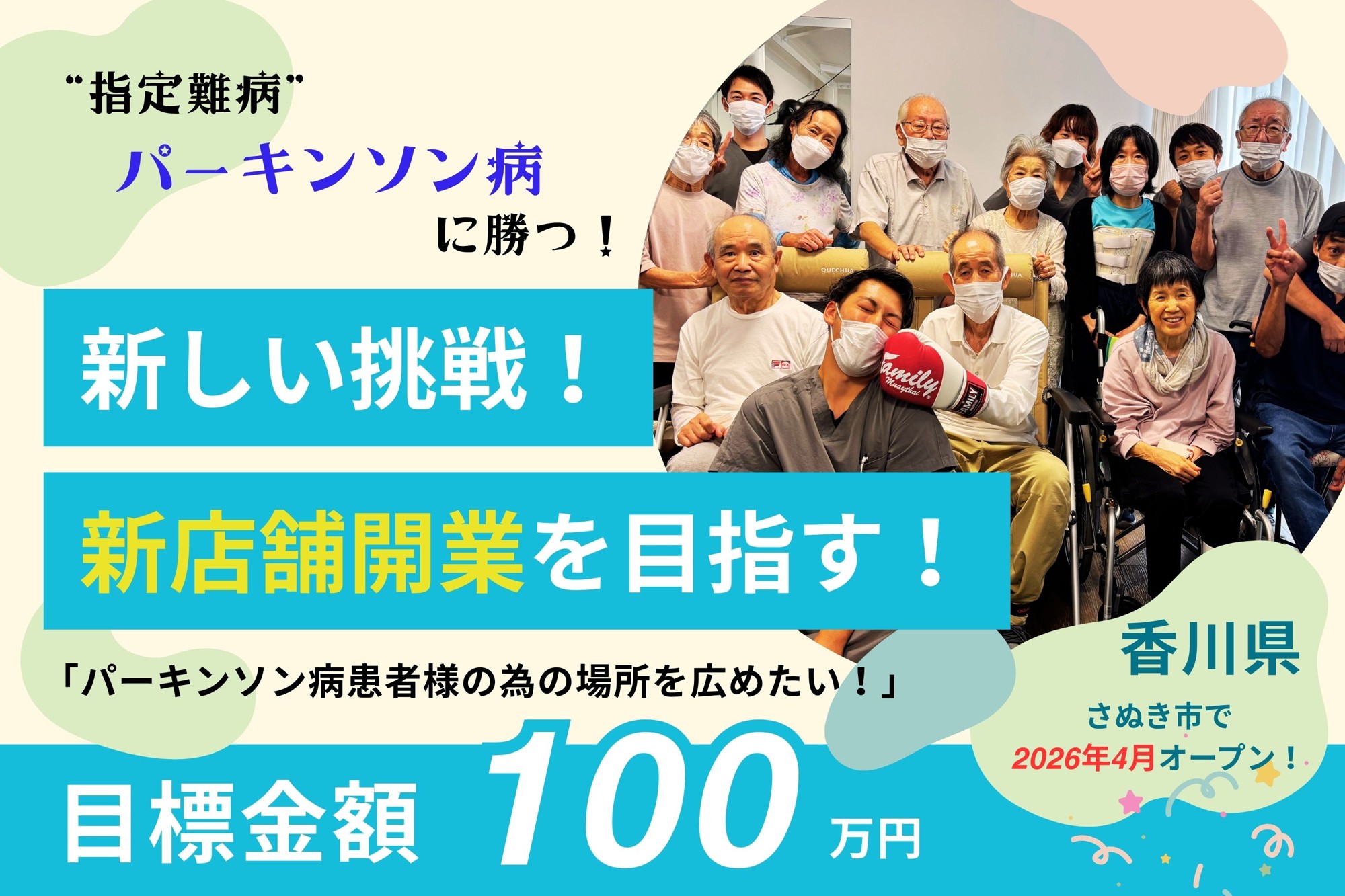 「パーキンソン病特化型デイサービスBeaver」「ファイティングフィットネスジムLeo」を運営するFunnyLife合同会社(本社:香川県高松市前田東町1070-1 代表;松本健嗣)は、新店舗となる「パーキンソン病特化型デイスタイルCaribou」「リズムウェルネススタジオLavi」を香川県さぬき市志度に立ち上げる為、その運営資金をクラウドファンディングサイト「CAMPFIRE」にて募集を開始しました。募集期間は2026年1月20日から3月31日までで、募集金額は100万円を目指します。