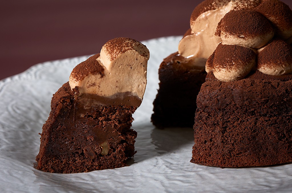 しっとりと焼き上げたガトーショコラとなめらかなガナッシュチョコレートのずっしり濃厚な味わいに、軽い口溶けの生チョコクリームを一緒にお召し上がりいただくことで、チョコレートの贅沢な味わいを最後まで飽きずにペロリとお召し上がりいただけます。