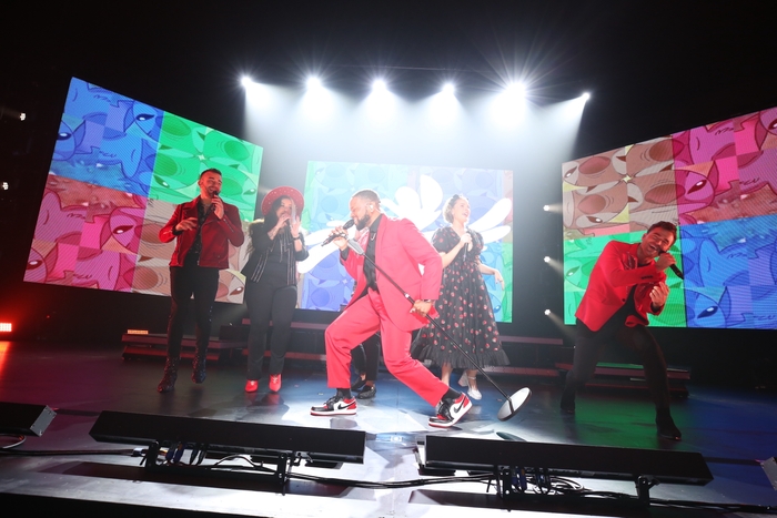 そこに各自あいさつするメンバーが大きく映し出されたところで、6人が歌いながら登場する。コンサートは、まるでオーケストラのチューニングのように全員が声を合わせる「チューン・アップ」から始まるが、重なり合った声が大きなうねりとなって会場に響く。いよいよ始まるという、この高揚感は何度体験してもいいものだ。そして、オープニングで歌うのは「音楽がぼくの家族」。音楽の歓びを情熱いっぱいに歌う映画『リメンバー・ミー』の劇中歌は、ディカペラからの歌のあいさつ。2019年のデビュー・アルバム『ディカペラ』もこの曲から始まった。