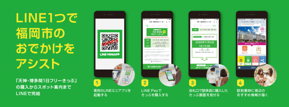 全国初 鉄道事業へのLINEミニアプリ導入。 福岡市地下鉄「天神・博多間1日フリーきっぷ」の 購入からスポット案内までLINEで完結。