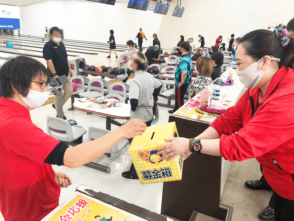 ストライク募金とは、ストライクをとられた方にご厚意でいただく募金です。ストライクをとられた方は手を振って、募金箱をもったスタッフを呼んでくださっていました。