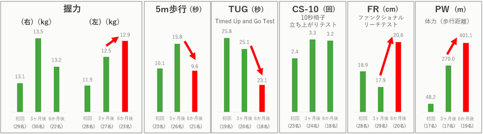 ※各項目・回ごとに測定人数が異なるため、各平均値の算出に用いた人数(n)は項目ごと・回ごとに明記しています。