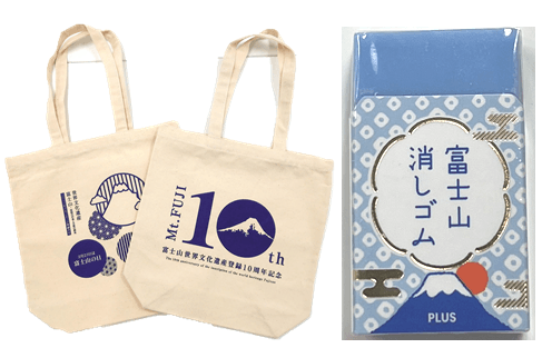 静岡県にある2つの世界遺産を紹介したパネルを見ながらクイズに答えると、オリジナル世界遺産グッズの抽選に参加できます。(景品例:富士山世界文化遺産登録10周年記念トートバッグ、富士山消しゴム等)また、参加賞として参加者全員に10周年記念ボールペンを差し上げます。