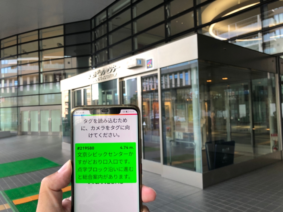 この「ナビレンスを活用した視覚障害者の移動支援事業」は、文京区役所、ホールなどがある文京シビックセンター各所に視覚障害者の移動をサポートする説明文を組み込んだ二次元コードを貼り、視覚障害者向けアプリNaviLens(ナビレンス https://www.navilens.com/ja/ )を用いて、人流が多い場所でもスムーズに移動できるか検証します。