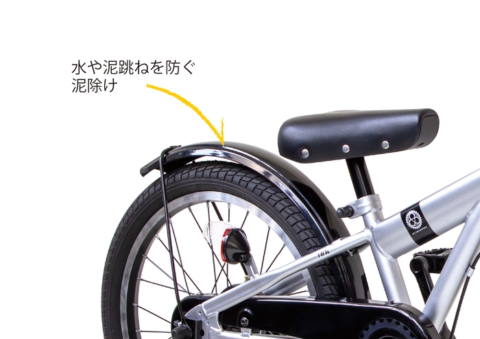 泥除けを装備していると、水や泥が跳ね上がり背中やお尻を汚す心配が軽減されます。