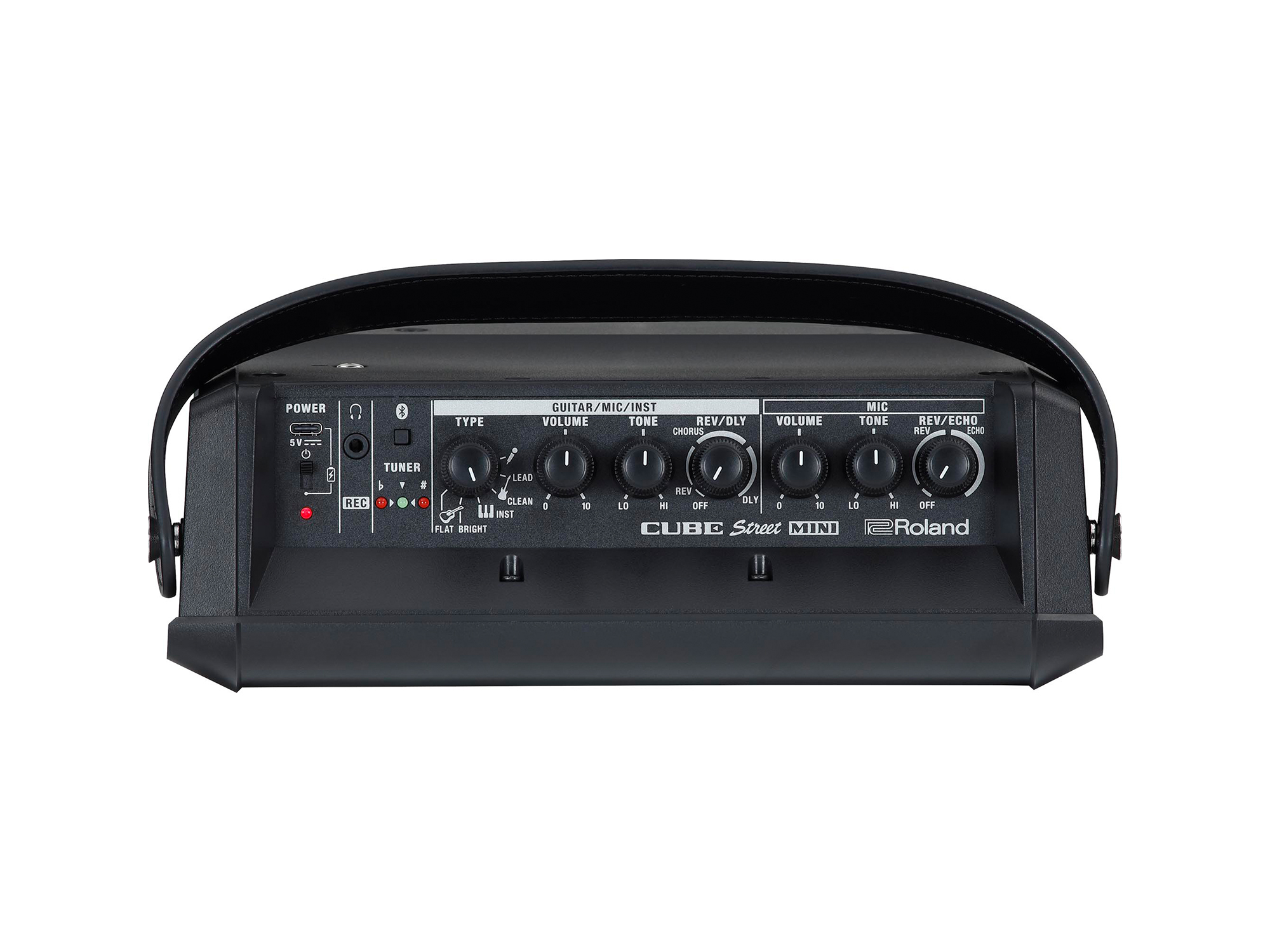 『CUBE Street MINI』は、USB Type-C(R)充電端子(充電用USBケーブル付属)、ヘッドホン接続及び録音が可能なステレオ・ミニ端子、ギター用チューナーなど、便利な機能を多数搭載しています。また、耐水性のある素材を使用したキャリング・ケース『CB-MBC1』(別売)は、『CUBE Street MINI』を保護するだけでなく、アクセサリーなどを収納することも可能です。