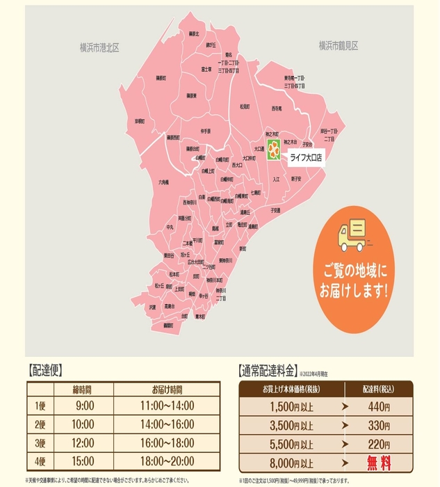 ライフネットスーパーのページをご覧いただき、お届け先が配達エリア内であれば、ご登録完了後すぐにご注文いただけます。