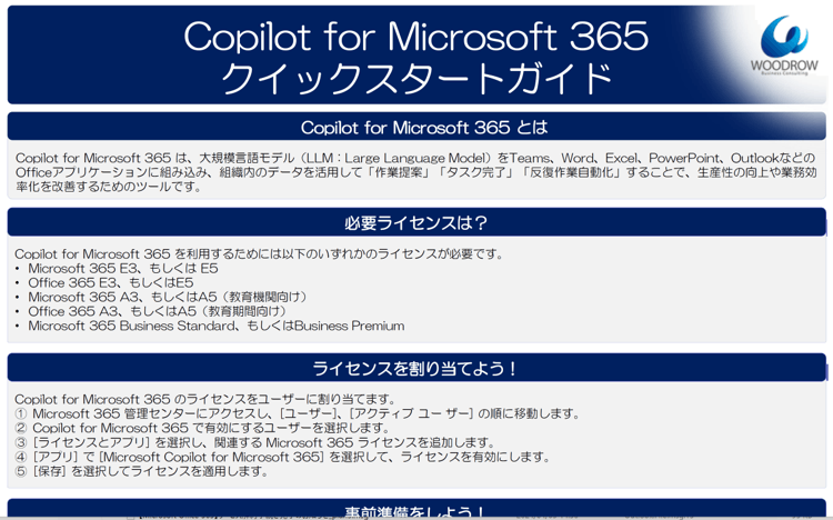 デジタルソリューションのコンサルティングを行うウッドロー・ビジネス・コンサルティング株式会社(所在地:東京都千代田区、代表:小村 秀生)は、昨年末にリリースされた「Copilot for Microsoft 365」の初期導入支援サービス「Copilot for Microsoft 365 クイックスタート支援サービス」の提供を開始することを発表いたします。