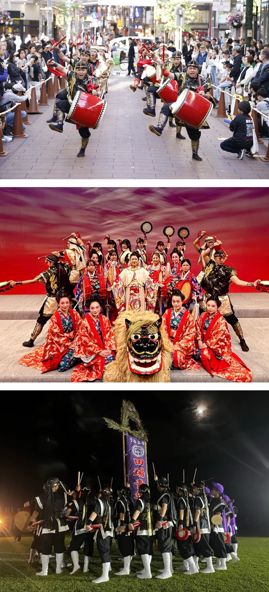 沖縄の文化を象徴する伝統芸能「エイサー」。今年は「ラ チッタデッラ」「川崎ルフロン」「川崎銀柳街」の3会場(予定)で、厳選された12団体による演舞を実施します。ダイナミックな踊りと力強く響く太鼓の音、そして各団体の個性が光る艶やかな衣装が観客を魅了。各ステージで繰り広げられる、魂を揺さぶるパフォーマンスの全貌にご期待ください。
