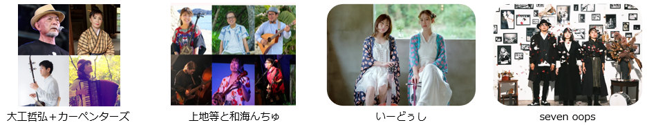 新旧沖縄ポップスから伝統の民謡、演舞まで沖縄に縁があるアーティスト約50組が登場します。