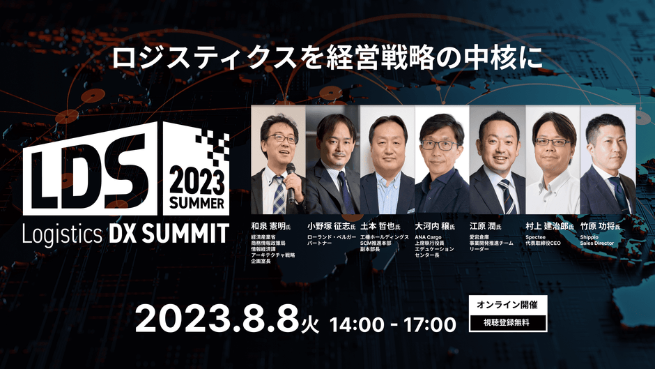 Shippio、オンラインカンファレンス 「Logistics DX SUMMIT スピンオフ 2023 summer ~ロジスティクスを経営戦略の中核に~」を開催決定(視聴無料) 基調講演に経済産業省から登壇! 工機ホールディングス、ANA Cargo、愛宕倉庫、Spectee、 ローランド・ベルガーから3つのプログラムをご用意!