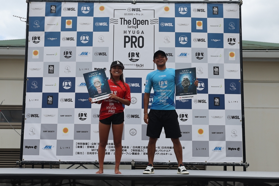 宮崎県宮崎市で行われたWSL公認大会 「The Open Surfing Miyazaki Series」第2弾 「QS3000 IBK日向プロ・WSLプロジュニア Presented by RASH」 男子は田中大貴がQS初優勝 女子は都築虹帆が宮崎シリーズ連覇