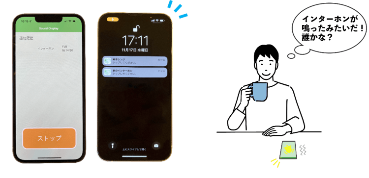 例えば以下のような場面で、音が鳴ったことをアプリが認識して通知してくれます。聴覚障がい者の方だけでなく、健常者の方にもご活用いただけます。